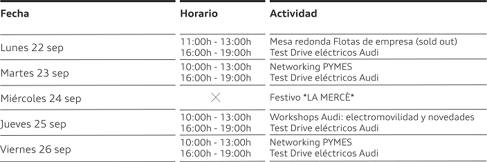Aquest setembre, durant la setmana de La Mercè, et convidem a visitar-nos a Audi City Rambla i descobrir tot el que la mobilitat del futur pot oferir-te.